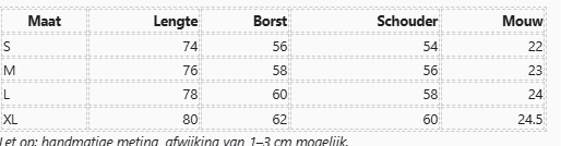 Maten: S, M, L, XL